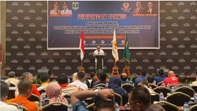 PADANG, PARADISO INDONESIA – Komite Olahraga Nasional Indonesia (KONI) Sumatera Barat menggelar Bimbingan Teknis di Hotel The ZHM Premiere Padang, dari Jumat hingga Minggu (22-24/2023).