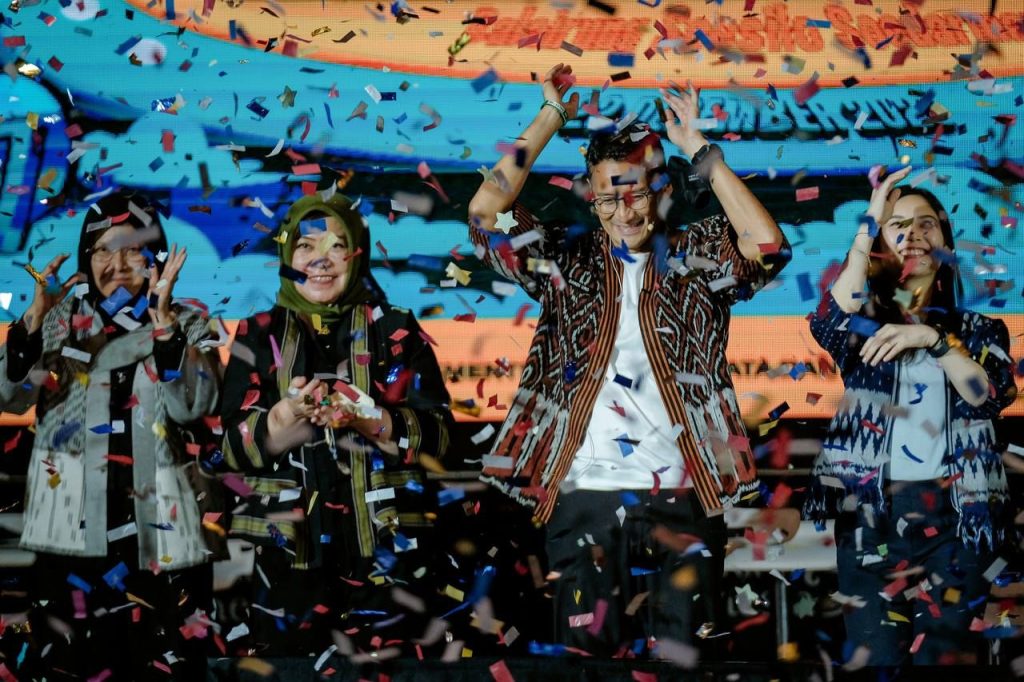 “Oleh karena itu kami sangat bersyukur bahwa seluruh sektor bisa melakukan penyesuaian sehingga target-target bukan hanya tercapai tapi terlampaui dengan semangat 3G yakni gercep, geber, dan gaspol untuk mendukung kebangkitan ekonomi dan terbukanya peluang usaha dan lapangan kerja,” kata Menparekraf Sandiaga.