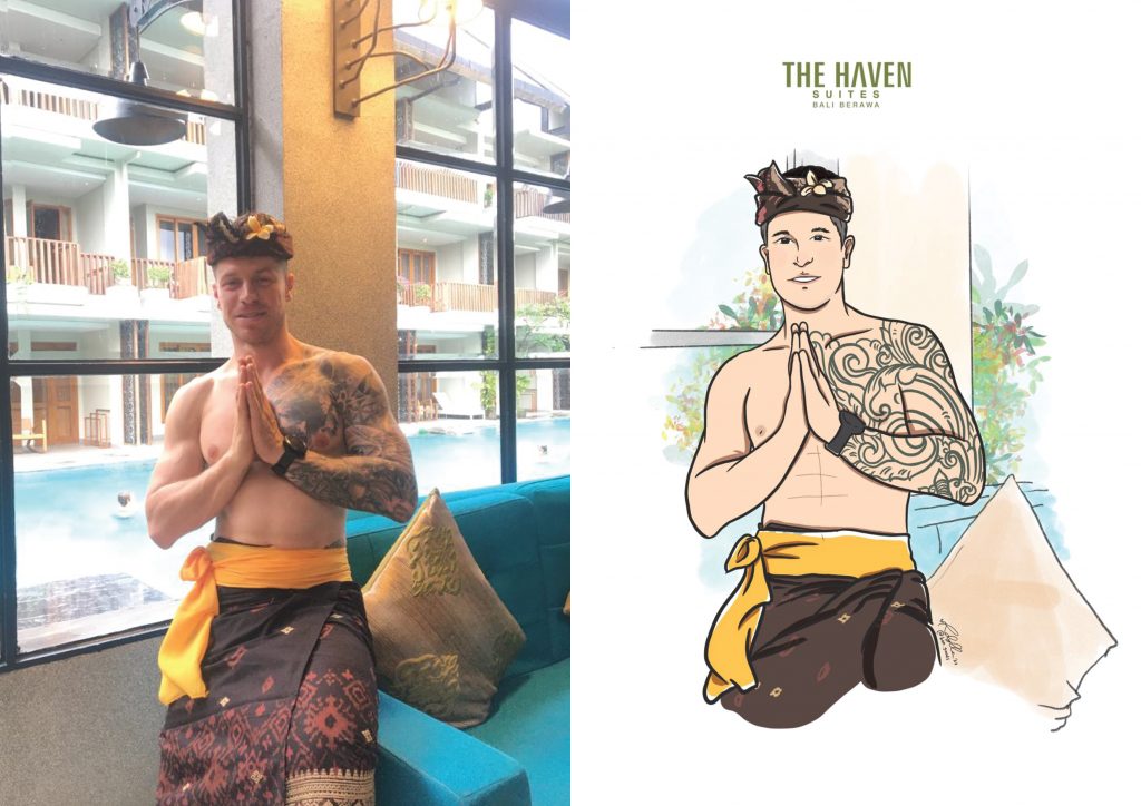 Tamu yang menginap akan mendapatkan pengalaman untuk berfoto menggunakan pakaian adat Bali Madya, kemudian seniman lokal akan menggambar tamu ke digital drawing yang menghasilkan gambar ilustrasi. Untuk kegiatan ini tamu bisa memberikan donasi ke seniman. Sebagai wujud CSR, THE HAVEN SUITES Bali Berawa juga ikut berdonasi ke sang illustrator.