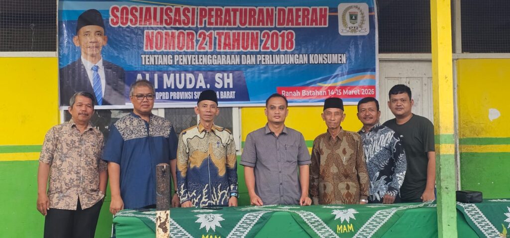 PASAMAN BARAT — Ratusan warga Nagari Batahan, Kecamatan Ranah Batahan, Kabupaten Pasaman Barat, berkumpul di MAM Silaping, Sabtu (14/3/2026), untuk mengikuti sosialisasi Peraturan Daerah Nomor 21 Tahun 2018 tentang Penyelenggaraan Perlindungan Konsumen yang disampaikan oleh Anggota Komisi II DPRD Provinsi Sumatera Barat, Ali Muda.
