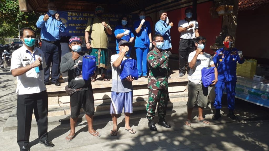 PARADISO.CO.ID|JIMBARAN – Dalam rangka penanggulangan bencana non alam penyebaran wabah Covid-19, melalui program bakti sosial (baksos) Koarmada II TA 2020 di wilayah kerja Lanal Denpasar, Komandan Lanal (Danlanal) Denpasar Kolonel Laut (P) Ketut Budiantara, SE, membagikan sejumlah paket sembako kepada masyarakat pesisir dan nelayan di Balai Nelayan Dharma Bakti, Desa Jimbaran, Kuta Selatan, Kabupaten Badung, Rabu (22/7/2020).