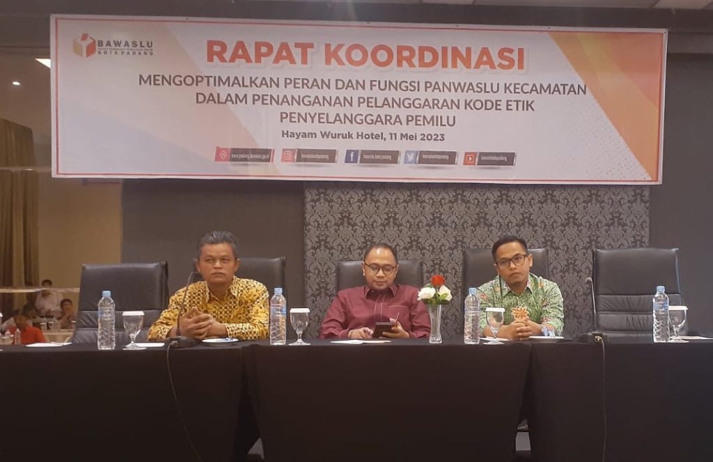 PADANG|PARADISO INDONESIA – Bawaslu Kota Padang bersama Panwaslu tingkat kecamatan menggelar Rapat Koordinasi (Rakor). Rakor ini bertujuan untuk mengoptimalkan peran dan fungsi panwaslu kecamatan dalam penangannan pelanggaran kode etik penyelenggara pemilu.