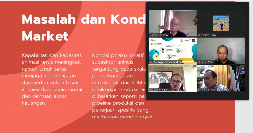 Plt. Deputi Bidang Ekonomi Digital dan Produk Kreatif Kemenparekraf/Baparekraf, Josua Simanjuntak dalam pembukaan Massive, Rabu (20/5/2020) mengatakan, industri animasi merupakan salah satu industri ekonomi kreatif yang terdampak pandemi COVID-19.