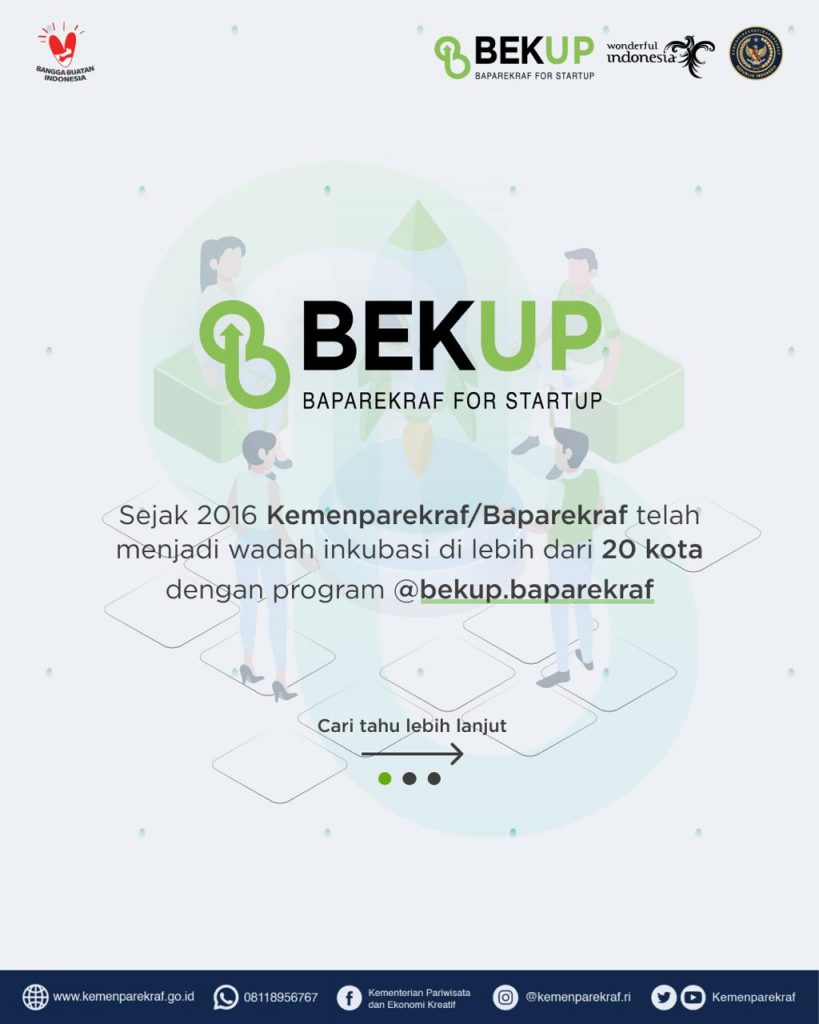 (BEKUP) sebagai upaya membangkitkan sektor pariwisata dan ekonomi kreatif di tengah pandemi COVID-19, sekaligus dalam rangka mendukung pertumbuhan startup digital di Indonesia untuk meningkatkan pertumbuhan ekonomi.