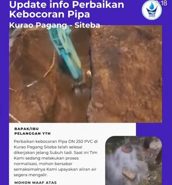 PADANG – Perumda Air Minum Kota Padang memastikan perbaikan kebocoran pipa berdiameter DN 250…