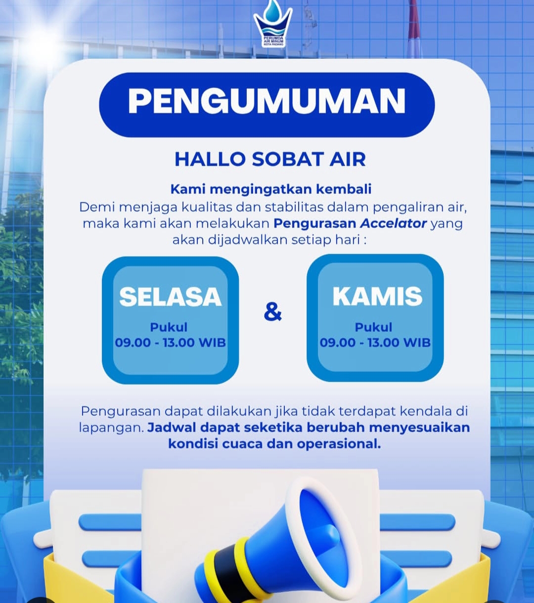 Perumda Air Minum Kota Padang secara rutin melakukan pengurasan accelerator setiap Selasa dan Kamis, pukul 09.00 hingga 13.00 WIB. Proses ini memang berdampak pada distribusi air, namun dinilai krusial untuk menjaga kualitas air tetap aman digunakan.