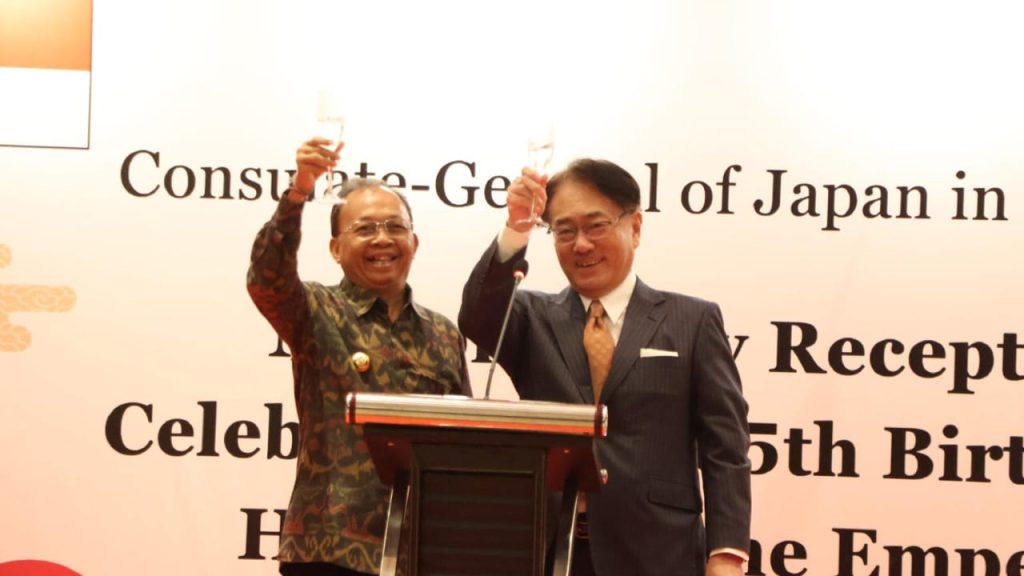 “Selamat Hari Ulang Tahun Sri Baginda Kaisar Jepang,” ucap Gubernur Koster singkat kepada Konsul Jenderal Jepang, sembari bersulang di depan para undangan.