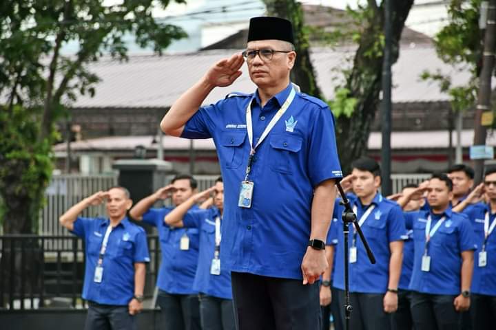 PADANG, PARADISO INDONESIA ~ Direktur Umum Perumda Air Minum Kota Padang, Afrizal Kuning langsung menjadi Pembina Upacara Bendera di Halaman Kantor Pusat Perumda Air Minum Kota Padang, Senin 3 Juni 2024.