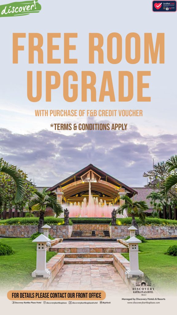 BALI|PARADISO.CO.ID –  Sejak Bulan  September Discovery Kartika Plaza Hotel menawarkan  promosi spesial yaitu Free Room Upgrade. Cukup dengan membeli F&B Credit Voucher, Anda bisa menikmati fasilitas Room Upgrade secara cuma – cuma.