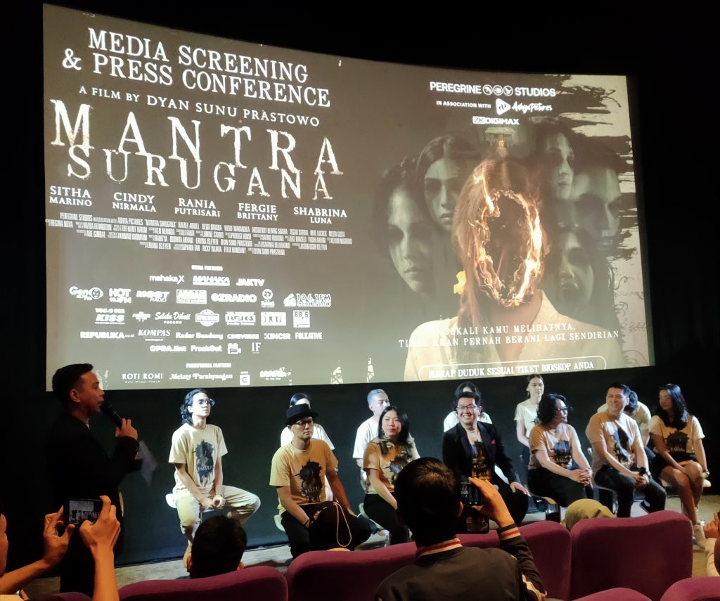 “Kami sangat antusias akhirnya Film Mantra Surugana sampai juga di Gala Premiere dan segera tayang serentak 27 Juli mendatang. Kami berharap kerja keras dan dedikasi penuh yang kami curahkan untuk film ini mendapat apresiasi dari pecinta film Tanah Air khususnya genre horor. Menggarap film horor yang berkualitas memang butuh komitmen, untuk itu kami bangga dapat menghadirkan film ini yang kami pastikan menjadi tontonan film horor yang tidak biasa dan menambah deretan film horor yang layak dinikmati”, kata Chief Executive Producer Peregrine Studios, Ervina Isleyen saat jumpa media di Studio Metropole XXI Jakarta, Jumat (21/07).