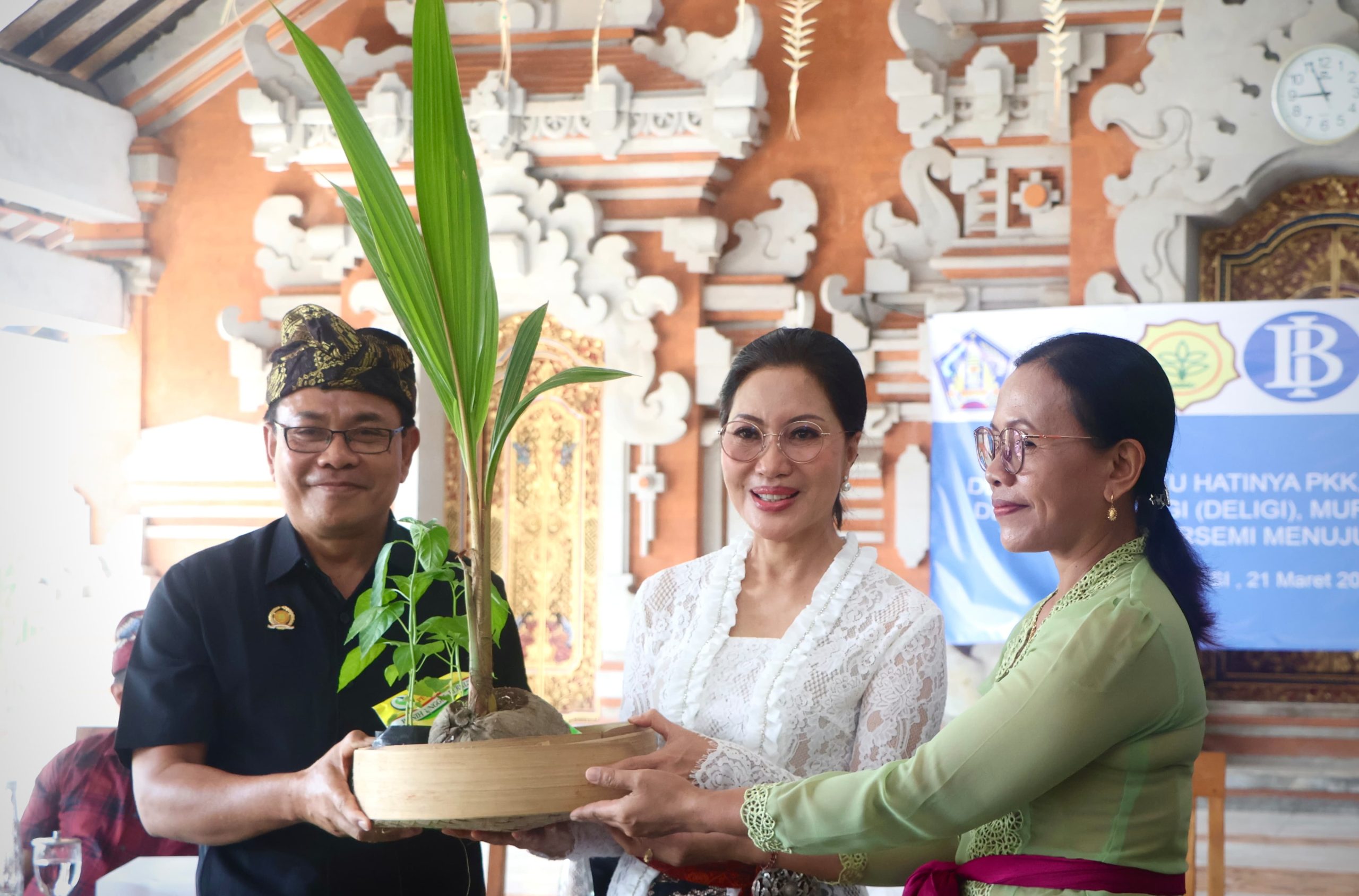 Dalam kegiatan tersebut, diserahkan juga secara simbolis bantuan dari Bank Indonesia berupa pot dan tanaman Bougenville kepada Pj. Ketua TP PKK Provinsi Bali yang disaksikan oleh Kepala Dinas Pemberdayaan Masyarakat, Desa, Kependudukan dan Catatan Sipil Provinsi Bali, Kepala Dinas Kesehatan Provinsi Bali, Kepala Dinas Pertanian dan Ketahanan Provinsi Bali, Camat Gianyar, Perbekel Temesi dan PKK Provinsi Bali serta PKK Desa Temesi. Selanjutnya diserahkan juga bantuan bibit tanaman cabe, kelapa genjah, dan bibit jagung dari Dinas Pertanian dan Ketahanan Pangan Provinsi Bali kepada Pj. Ketua TP PKK Provinsi Bali yang selanjutnya bantuan-bantuan tersebut diserahkan Pj. Ketua TP PKK Provinsi Bali kepada Ketua TP PKK Desa Temesi.***igo