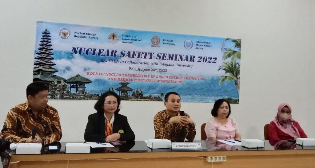 Lebih lanjut Plt. Kepala BAPETEN, Sugeng Sumbarjo menyatakan bahwa untuk menyambut KTT G20 2022 mendatang di Bali, di mana tema besar yang diangkat adalah mengenai transisi energi, dan seiring dengan perhatian pemerintah yang lebih besar terhadap isu-isu transisi energi bersih dan pengelolaan limbah radioaktif, maka BAPETEN mengangkat tema dalam Seminar Keselamatan Nuklir kali ini: “Peran Pengawasan Ketenaganukliran dalam Transisi Energi Hijau dan Pengelolaan Limbah Radioaktif.