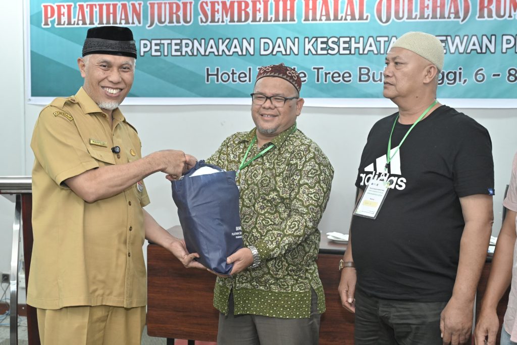 BUKITTINGGI, PARADISO INDONESIA –Gubernur Sumatera Barat (Sumbar), Mahyeldi Ansharullah, menyatakan bahwa Pemprov Sumbar semakin fokus dalam pengembangan geliat industri halal, salah satunya dengan memastikan seluruh produk makanan telah diproses secara halal. Hal itu disampaikan Gubernur saat membuka Pelatihan Kompetensi Juru Sembelih Halal (Juleha) Ruminansia di Triple Tree Hotel Bukittinggi, Senin (06/05/2024).