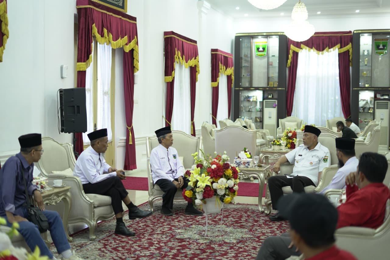 PADANG — Gubernur Sumatera Barat (Sumbar), Mahyeldi Ansharullah menerima bantuan kemanusiaan untuk masyarakat terdampak bencana dari Badan Musyawarah Keluarga Minangkabau (BMKM) Sumatera Selatan di Istana Gubernur Sumbar, Rabu (24/12/2025).