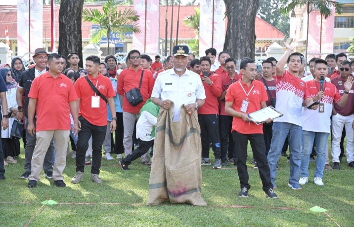 Gubernur Mahyeldi Buka Lomba Melukis Tong Sampah dan Ikuti Pacu Karung  Meriahkan HUT Kemerdekaan RI Ke-78
