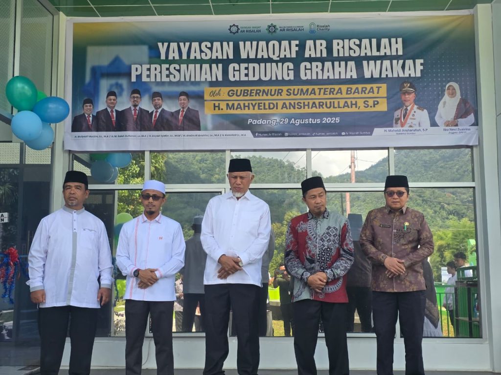 PADANG – Gubernur Sumatera Barat (Sumbar), Mahyeldi Ansharullah meresmikan Graha Wakaf AR Risalah yang merupakan gedung wakaf pertama di provinsi ini yang secara khusus hadir untuk mengedukasi masyarakat tentang wakaf. Peresmian berlangsung khidmat di kompleks Yayasan Wakaf AR Risalah, di Padang. Jum’at (29/8/2025).