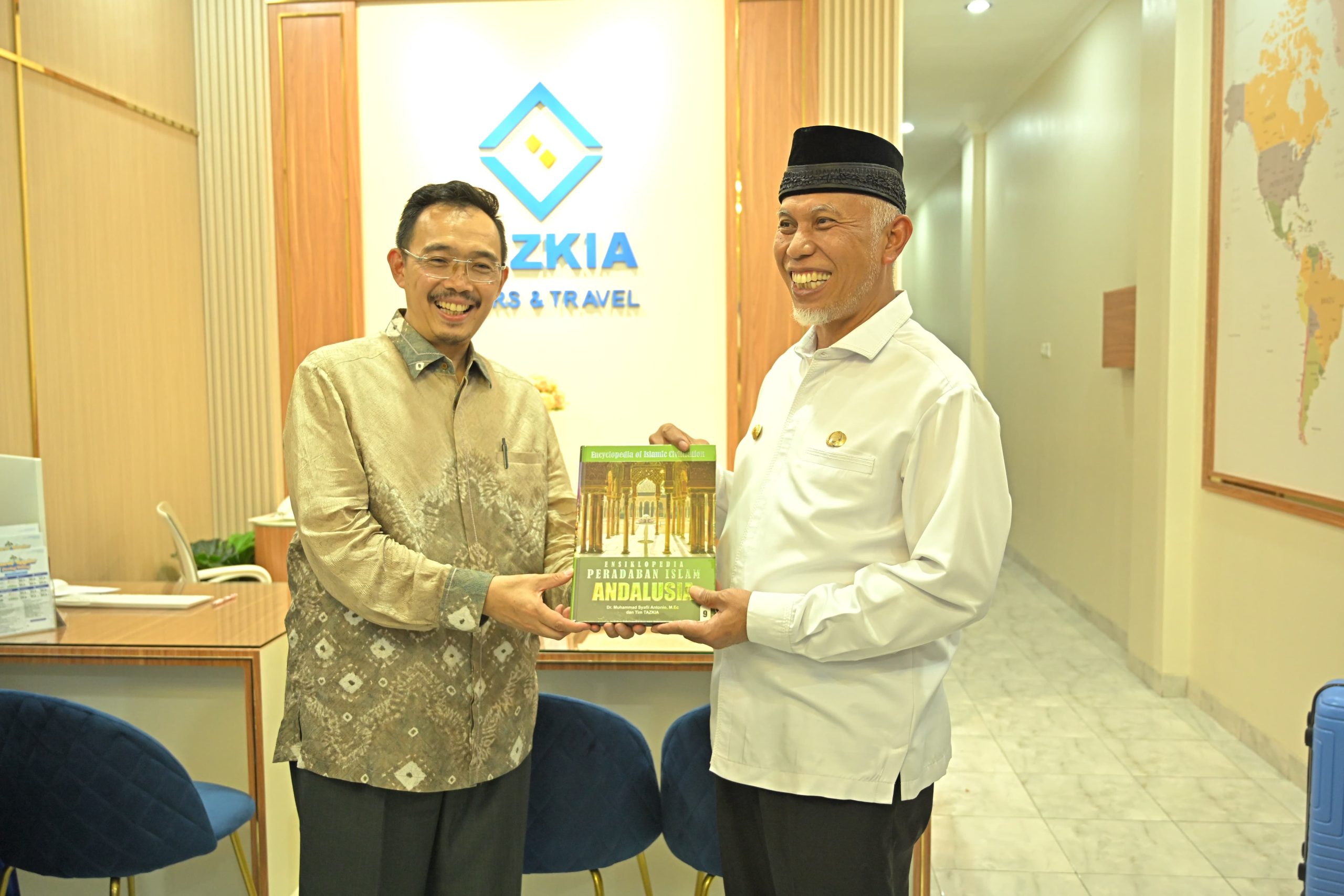 PADANG, PARADISO INDONESIA — Gubernur Sumatera Barat (Sumbar), Mahyeldi Ansharullah, menyambut baik kehadiran Tazkia Tours and Travel Cabang Padang, sebagai opsi baru bagi masyarakat Sumbar untuk beribadah haji dan umrah, serta tur perjalanan lainnya. Kehadiran Tazkia juga disebut sangat sejalan dengan tekad Pemprov Sumbar dalam pengembangan pariwisata serta ekonomi dan keuangan syariah.