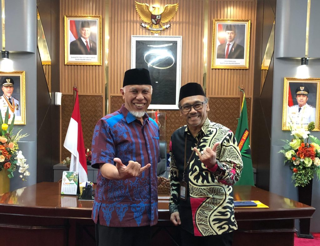 PADANG— Gubernur Sumatera Barat, Mahyeldi Ansharullah, menerima kunjungan Kepala Badan Pusat Statistik (BPS) Sumbar, Sugeng Arianto, bersama jajaran di Ruang Kerja Gubernur, Kamis (6/11/2025).