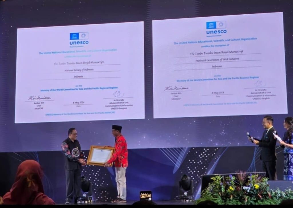 Sertifikat itu merupakan bukti dari telah ditetapkannya Naskah Tambo Tuanku Imam Bonjol dan Kawasan Pabrik PT. Semen Padang sebagai salah satu ingatan dunia untuk Asia dan Pasifik atau Memory of the World (MoW) for Asia and the Pasific.