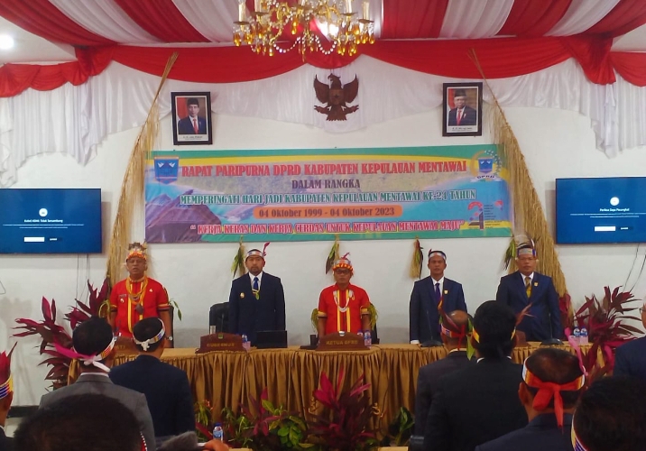 Hal itu disampaikan Audy Joinaldy, saat memberikan sambutan dalam Peringatan Hari Jadi Kabupaten Kepulauan Mentawai ke 24 tahun di Ruang Sidang Utama DPRD Kabupaten Kepulauan Mentawai, Rabu (4/10/2023).