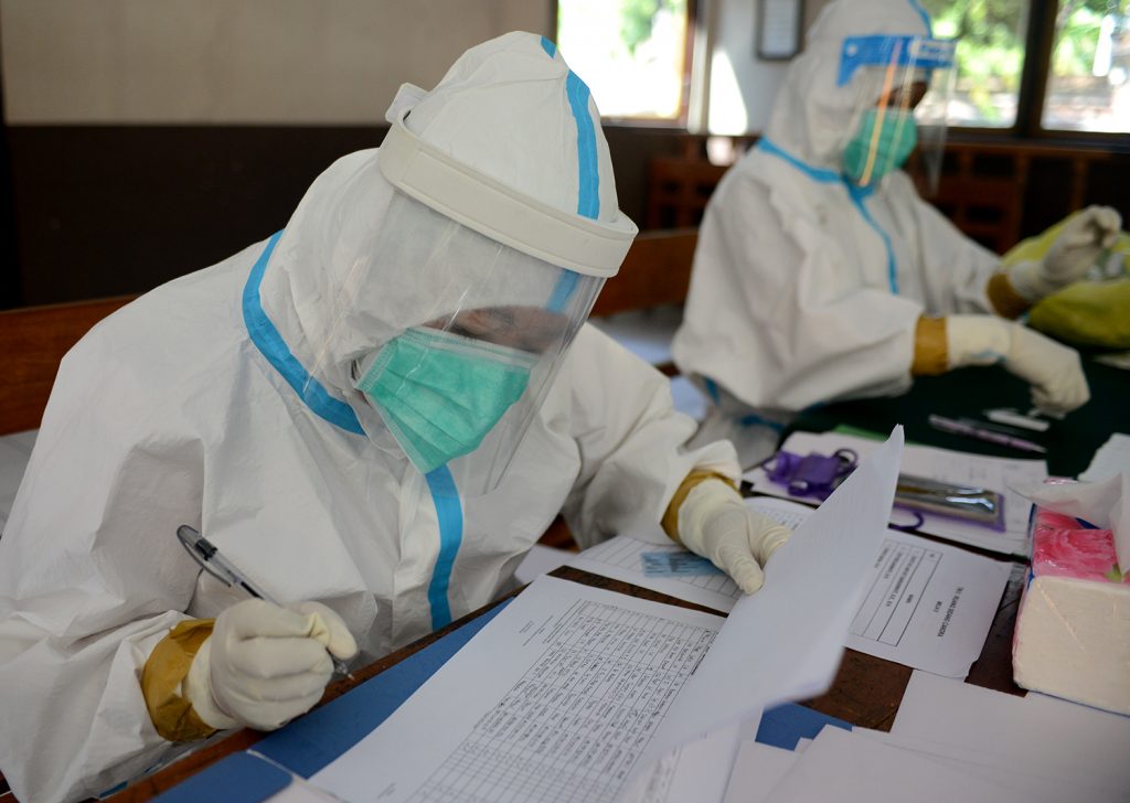 Kemudian, dilanjutkan dengan swab test covid-19, dan hasilnya 5 orang dinyatakan positif dari 15 orang yang di-swab test, 5 orang diantaranya tiga Hakim, dan dua Panitera Pengganti.