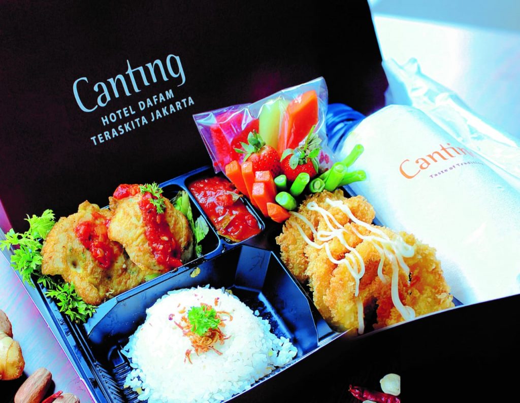 Pemesanan mulai dari 5 porsi gratis ongkos kirim diantarkan langsung oleh concierge hotel menggunakan mobil hotel yang sudah sterilisasi sebelum pengantaran. Pilihan menu spesial siap Anda nikmati yaitu diantaranya Rice Box Beef Blackpepper; Rice Box Kungpao; Rice Box Roast Beef Sambal Matah; Rice Box Salmon Metayaki; Rice Box Prawn Salted Egg; Rice Box Duck with Kalio; Rice Box Beef Yakiniku; Rice Bowl Capcay Seafood; Rice Box Dory Sambal Matah; Rice Box Beef Balado. Selain itu ada juga beverage promo, yaitu Haci, Seven Ky Love, dan Teraskita Latte, hanya dengan harga Rp60.000,00 net/ gelas.