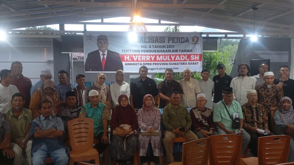 PADANG — Ratusan warga Lubuk Kilangan, Kota Padang, berkumpul di Pondok Putih Padayo Agro pada Sabtu (14/3/2026) untuk mengikuti sosialisasi Peraturan Daerah Nomor 4 Tahun 2017 tentang Pengusahaan Air Tanah yang disampaikan Sekretaris Komisi IV DPRD Provinsi Sumatera Barat, Verry Mulyadi.