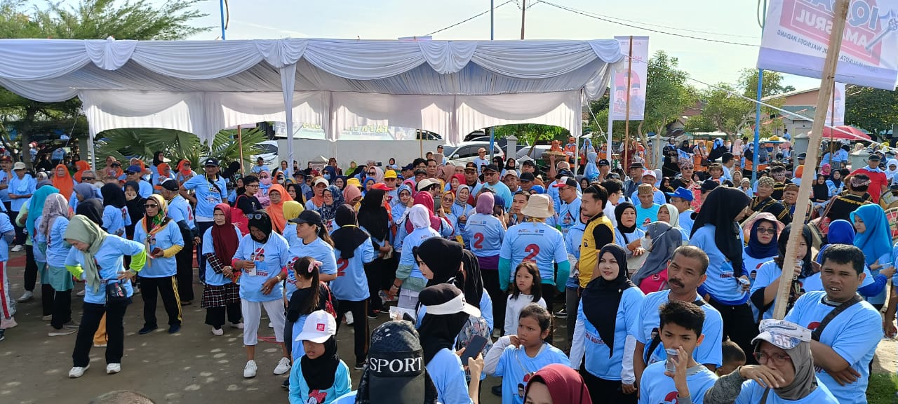 PADANG, PARADISO INDONESIA – Ribuan masa memadati jalan santai Padang Piaman Bersatu bersama Calon Wali Kota dan Wakil Wali Kota Padang Muhammad Iqbal dan Amasrul, Sabtu (16/11/2024).