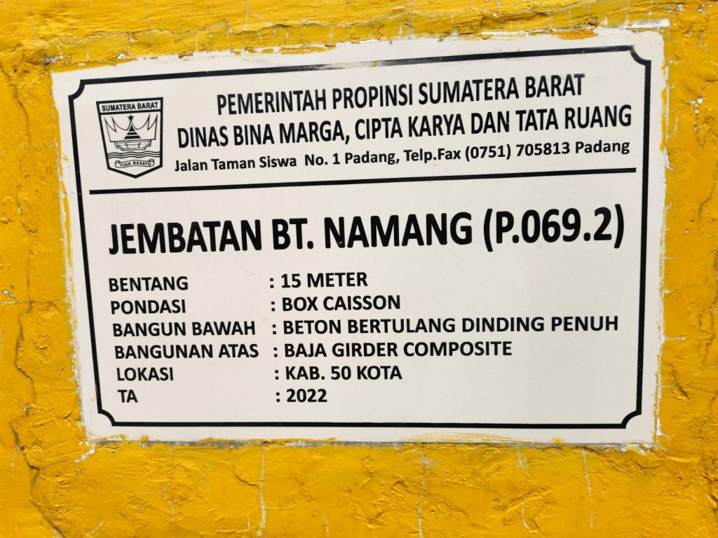 Pemprov Sumbar melalui Dinas Bina Marga Cipta Karya dan Tata Ruang (BMCKTR) Sumbar telah membangun jembatan Batang Namang di Kabupaten Limapuluh Kota yang menghubungkan Jalan Provinsi Kota Payakumbuh–Suliki sepanjang 15 meter menggunakan APBD 2022 dengan anggaran Rp4,1 miliar.