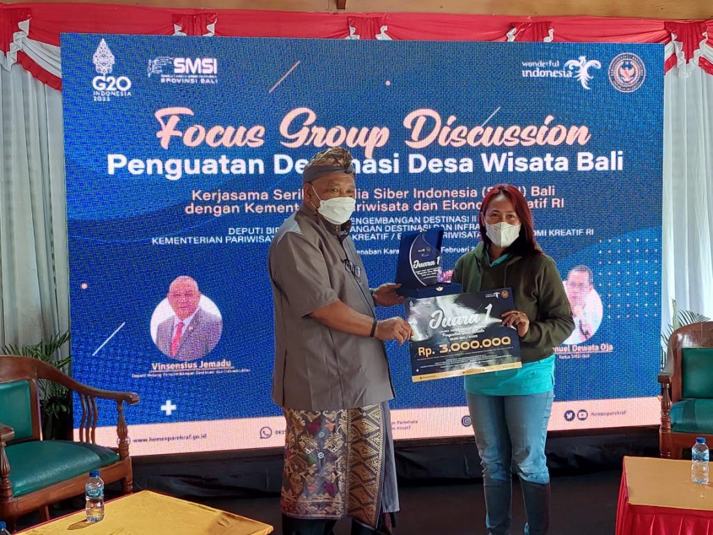 Terpilih sebagai juara pertama adalah Ni Kadek Novi Febriani dari media Radarbali.id dengan judul berita “Pesona Desa Wisata Temukus yang Masih Terbungkus” dan berhak atas uang Rp3 juta.