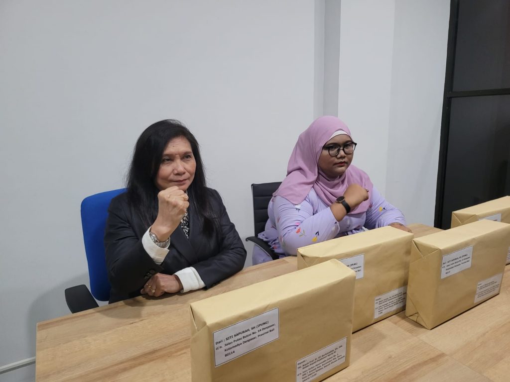 Siti Sapurah,SH dengan sejumlah dokumen hukum yang telah dikirim ke Presiden Jokowi, Jaksa Agung dan KPK. FOTO - IST.