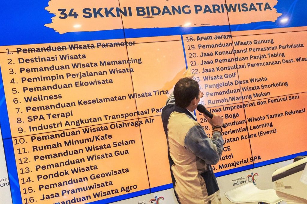Jakarta (Paradiso) – Kementerian Pariwisata dan Ekonomi Kreatif/Badan Pariwisata dan Ekonomi Kreatif (Kemenparekraf/Baparekraf) berhasil menyelesaikan 34 rancangan standar berbasis kompetensi (SKKNI, KKNI, Skema Okupasi) di sepanjang tahun 2022-2023 yang akan dijadikan sebagai acuan dalam pelaksanaan sertifikasi kompetensi dalam upaya memastikan pengembangan dan profesionalisme sumber daya manusia (SDM) pariwisata.