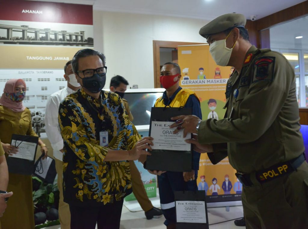 Paradiso.co.id|Tangerang – Kementerian Pariwisata dan Ekonomi Kreatif/Badan Pariwisata dan Ekonomi Kreatif (Kemenparekraf/Baparekraf) bersama PT. Delamibrands Kharisma Busana menyerahkan 10.000 masker kain kepada Pemerintah Daerah Kota Tangerang untuk dibagikan kepada para petugas dan pekerja lapangan yang terpaksa harus bekerja di luar rumah di tengah pandemi COVID-19.