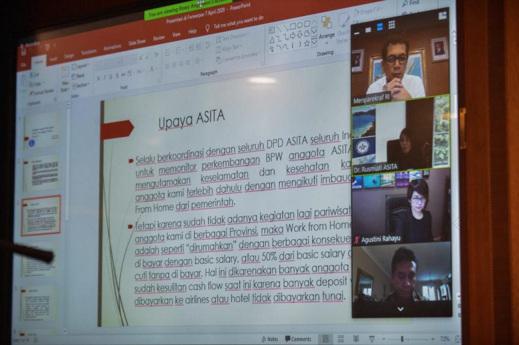 Dalam diskusi virtual dengan Forwaparekraf tersebut, hadir pula sebagai narasumber Ketua Perhimpunan Hotel dan Restoran Indonesia (PHRI) Hariyadi Sukamdani dan Ketua Umum Asosiasi Biro Perjalanan Wisata Indonesia (ASITA) Nunung Rusmiati.