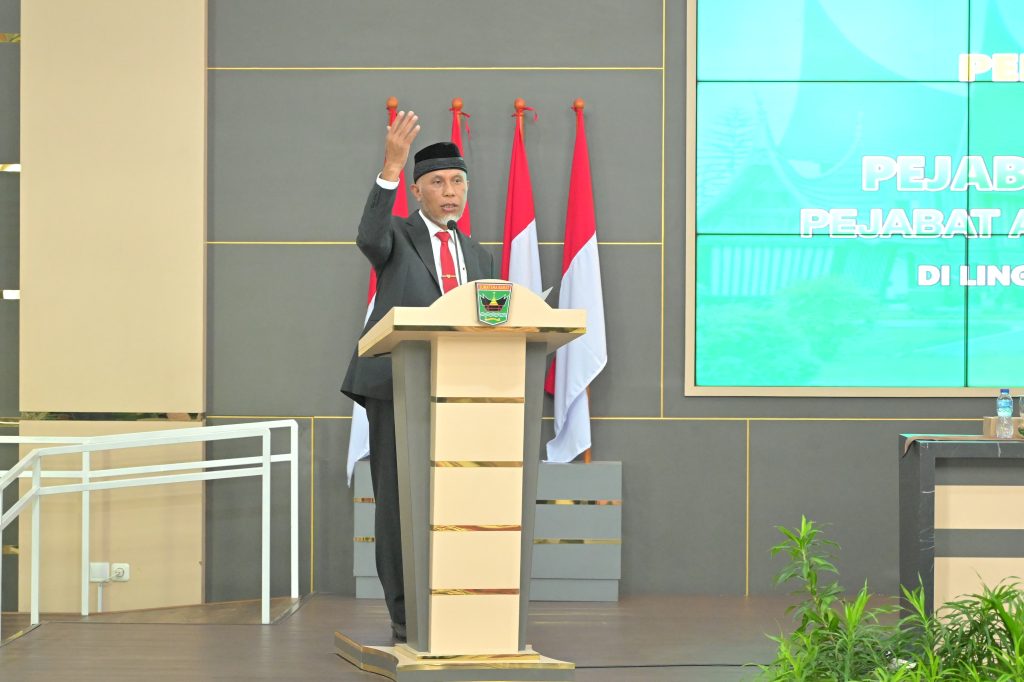 PADANG, PARADISO INDONESIA – Gubernur Sumatera Barat (Sumbar), Mahyeldi Ansharullah, melantik Sembilan Pejabat Eselon II, 34 Pejabat Eselon III, dan 51 Pejabat Eselon IV di lingkup Pemerintah Provinsi (Pemprov) Sumbar, Jumat (05/01/2024). Dalam arahannya, Gubernur mengingatkan seluruh pejabat agar semata-mata bekerja untuk kepentingan publik, serta mendukung pelaksanaan visi-misi Pemprov Sumbar.