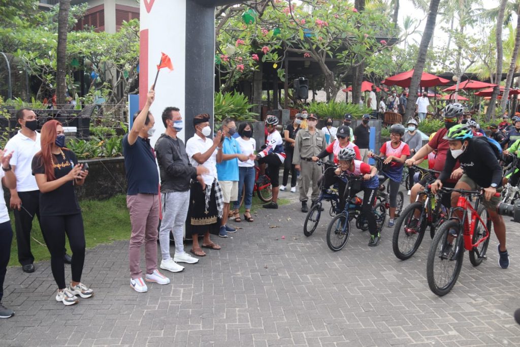 LEGIAN|PARADISO.CO.ID – Wakil Bupati Badung I Ketut Suiasa melepas Charity Fun Bike Legian Beach Hotel 2021, Minggu (11/4). Acara yang dilaksanakan di depan Legian Beach Hotel Jalan Pantai Legian Kuta ini dihadiri Ketua LPM Legian Wayan Puspa Negara, Bendesa Adat Legian Anak Agung Made Mandra serta pihak Manajemen Legian Beach Hotel.