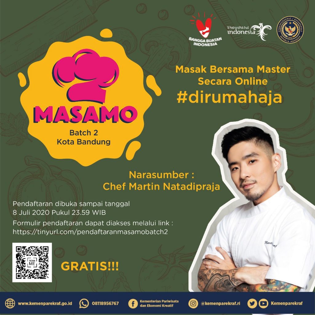 Dalam acara Masamo batch 2 yang dilaksanakan untuk wilayah Kota Bandung, Jawa Barat ini, rencananya akan dipandu oleh Chef Martin Natadipraja. Sesuai dengan nama acaranya, Masamo akan dilaksanakan via aplikasi Zoom Meeting.