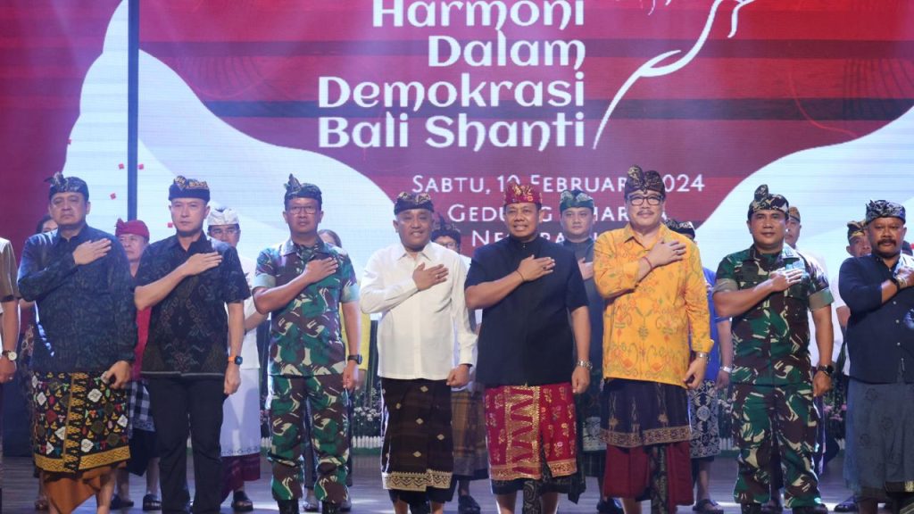 Dalam acara yang bertajuk “Harmoni dalam Demokrasi Bali Shanti” turut dihadiri oleh Wakil Ketua DPRD Provinsi Bali, I Nyoman Sugawa Korry, Kepala Badan Intelijen Negara Daerah Bali, Brigjen TNI Agus M Latief,S.I.P, Ketua Bawaslu Provinsi Bali, I Putu Agus Tirta Saguna, Jajaran Forkopimda Provinsi Bali, kepala perangkat daerah terkait di lingkungan Pemprov Bali, tokoh agama, para pengurus partai dan undangan lainnya. Acara juga diisi dengan doa lintas agama serta persembahan “Nyanyian Dharma”.***igo