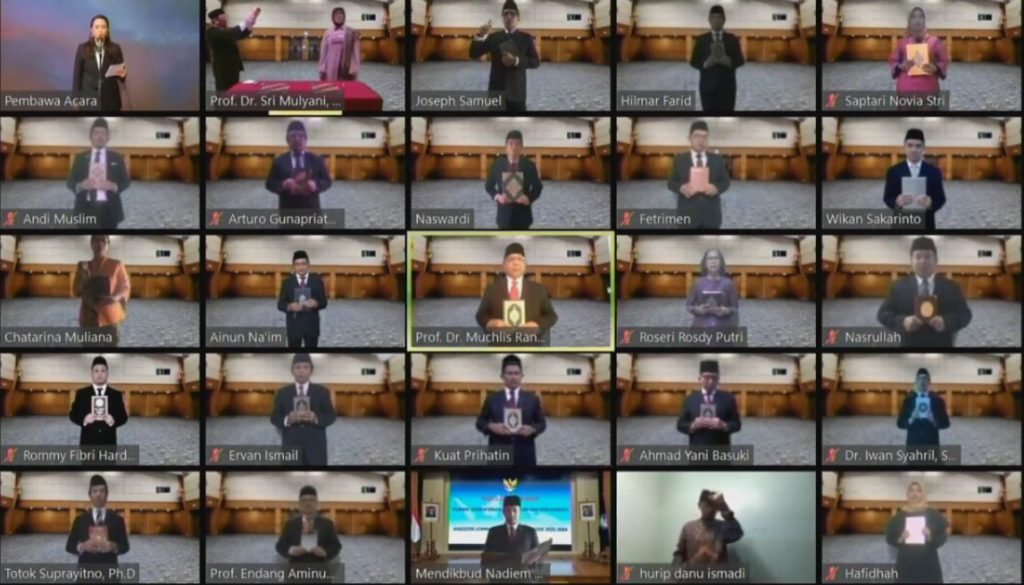 Jakarta (Paradiso) — Menteri Pendidikan dan Kebudayaan (Mendikbud), Nadiem Anwar Makarim melantik delapan Pimpinan Tinggi Madya di lingkungan Kementerian Pendidikan dan Kebudayaan (Kemendikbud) pada Jumat (08/05/2020). Selain itu, Mendikbud juga melantik, Rektor Universitas Singaperbangsa Karawang serta 17 anggota Lembaga Sensor Film (LSF).