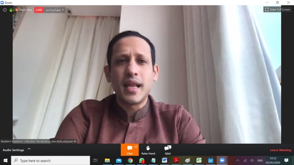 “Mandat Presiden Joko Widodo adalah kita harus lompat melalui digitalisasi. Dan itu membutuhkan paradigma baru di dunia pendidikan, baik pendidikan menengah ke bawah dan pendidikan tinggi. Di mana fokusnya adalah kepada kreativitas, computational logics, dan juga fokus kepada berkarya,” jelas Mendikbud Nadiem.