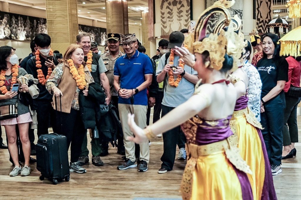 Bali (Paradiso) – Menteri Pariwisata dan Ekonomi Kreatif/Kepala Badan Pariwisata dan Ekonomi Kreatif (Menparekraf/Kabaparekraf) Sandiaga Salahuddin Uno menyambut wisatawan pertama yang tiba di Indonesia di tahun 2023.
