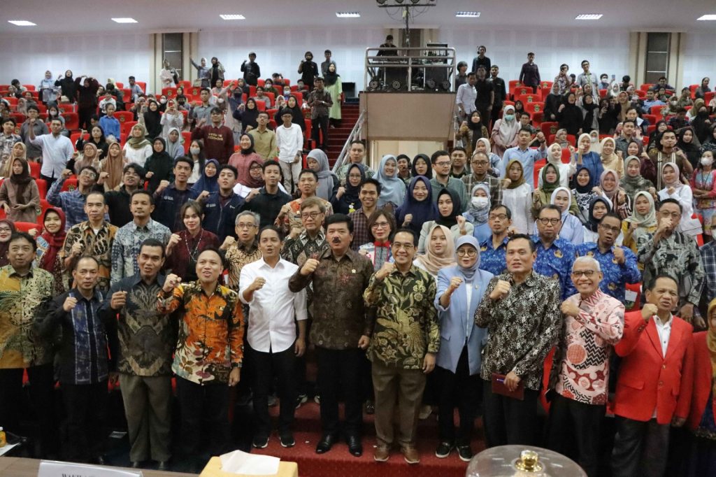 Makassar (Paradiso) – Usai membagikan Sertipikat Hak Milik untuk rumah Dosen Universitas Hasanuddin, Menteri Agraria dan Tata Ruang/Kepala Badan Pertanahan Nasional (ATR/BPN), Hadi Tjahjanto menjadi _keynote speaker_ dalam program ATR/BPN Goes to Campus yang bertajuk “Pengelolaan Pertanahan dan Tata Ruang yang Partisipatif Menuju Indonesia Emas 2045. Kegiatan tersebut berlangsung di Auditorium Prof. Dr. H. Baharuddin Lopa, S.H., Fakultas Hukum Universitas Hasanuddin, Makassar, Sulawesi Selatan, pada Jumat (17/03/2023).