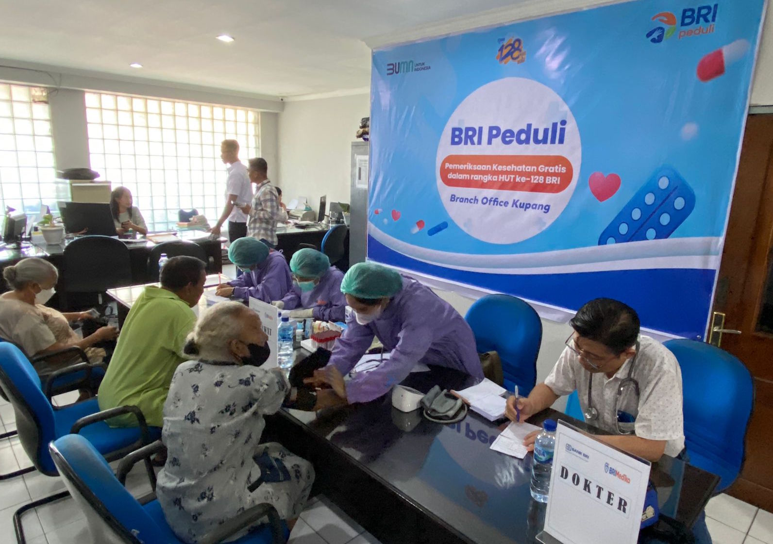 DENPASAR, PARADISO INDONESIA – Dalam rangka HUT ke-128, BRI Regional Office Denpasar menyelenggarakan layanan pemeriksaan kesehatan gratis di 5 Branch Office BRI se-Bali, NTB, dan NTT. Kelima cabang itu adalah  Branch Office BRI Renon, Branch Office BRI Gajah Mada (KCP Hayam Wuruk), Branch Office BRI Kupang, Branch Office BRI Mataram, dan Branch Office BRI Ende.