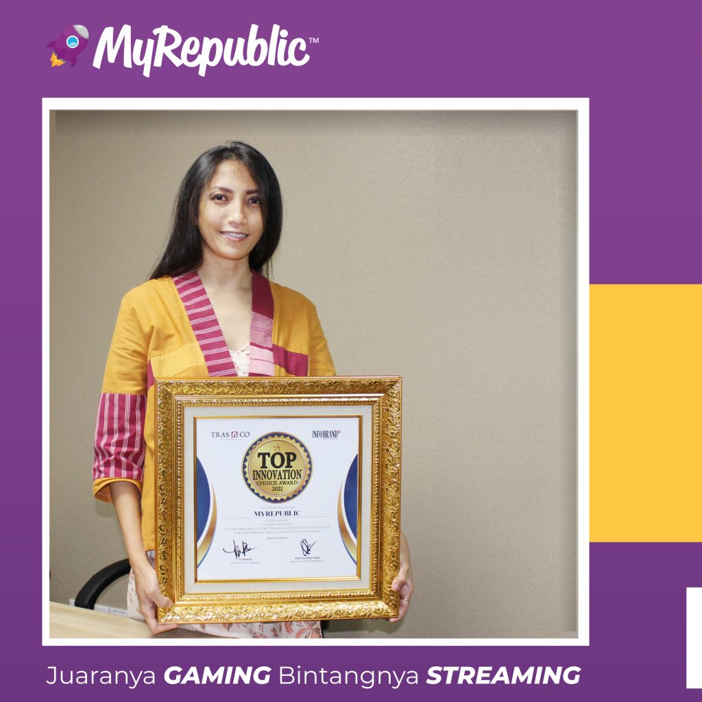 Berkat inovasi ini, MyRepublic berhasil membawa pulang penghargaan Top Innovation Choice Award 2021 untuk inovasi Chatbot WhatsApp yang diselenggarakan oleh Tras N Co dan Info Brand. Mewakili PT Eka Mas Republik (MyRepublic), Melanie Dwita Maharani, Direktur Human Capital menerima penghargaan secara virtual pada Senin, 31 Mei 2021.
