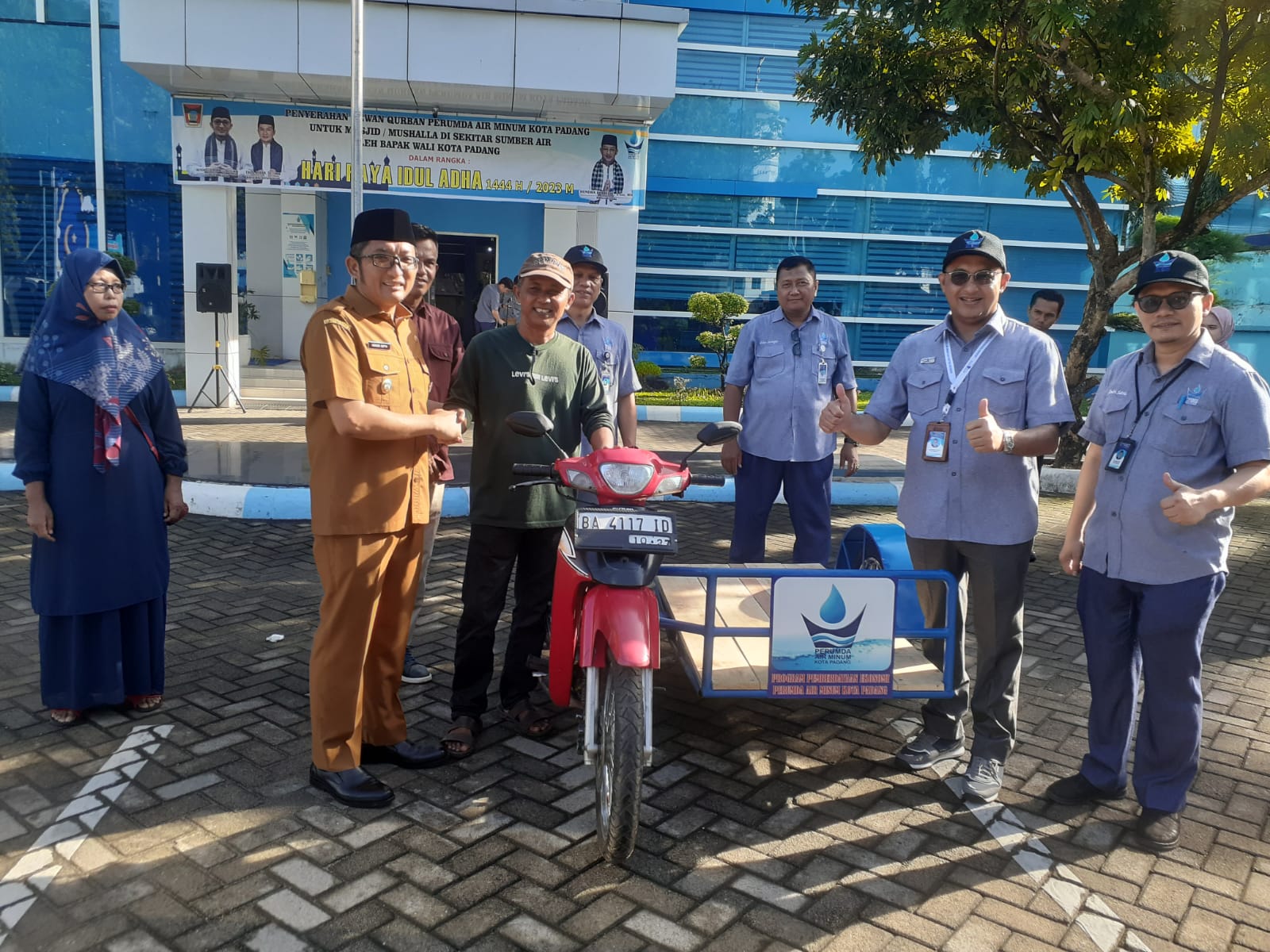 Bantuan gerobak yang diberikan oleh Perumda Air Minum Kota Padang. FOTO – IST.