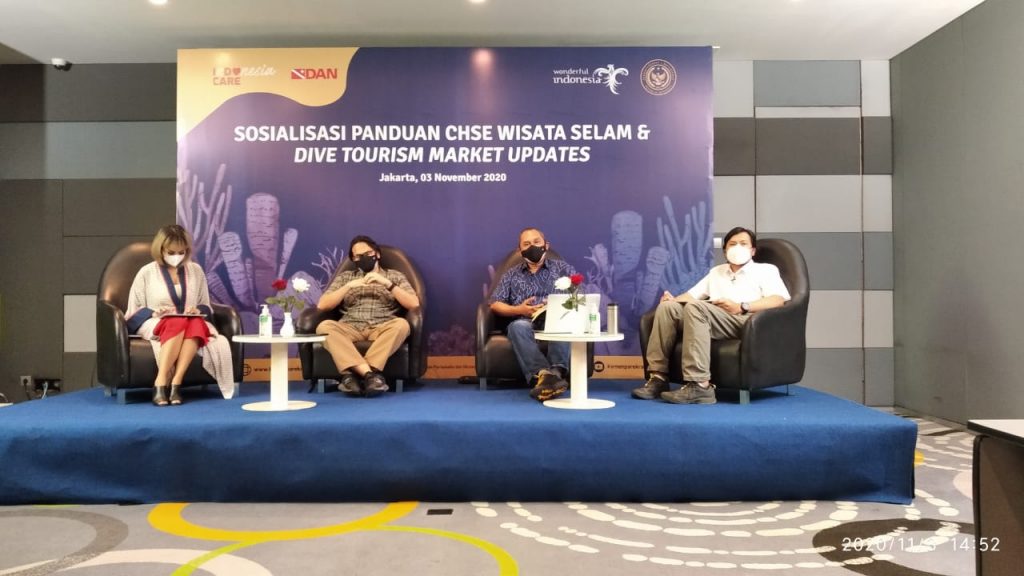 Kegiatan ini merupakan sosialisasi panduan pelaksaaan Cleanliness, Health, Safety, and Environmental Sustainability (CHSE) Usaha Wisata Selam. Kali ini sosialisasi ditujukan untuk pelaku usaha wisata selam sekitar Jakarta, Bogor, Tangerang Depok, Bekasi, Serang dan Bandung. Setelah sebelumnya telah dilakukan serangkaian kegiatan sosialisasi telah dilaksanakan di beberapa destinasi selam secara hybrid di Manado, Labuan Bajo dan Bali pada bulan Oktober 2020.