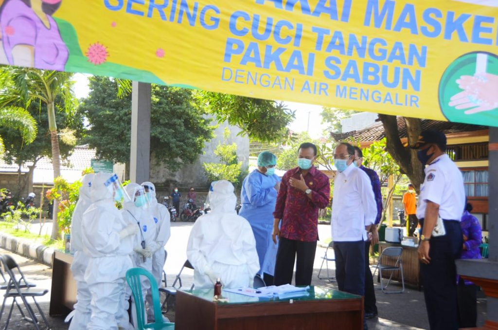 Paradiso.co.id|Klungkung – Bali terus melakukan tracing Covid19 secara massif dan meluas. Salah satunya dengan menggelar rapid test di Pasar Galiran di Semarapura Kabupaten Klungkung Bali, Selasa (23/6). Saat ini Pasar Galiran ditutup setelah beberapa pedagang diketahui positif Covid19. Di tengah penutupan Pasar Galiran, Semarapura, Kabupaten Klungkung akibat meluasnya penularan covid-19 di lokasi tersebut, Sekretaris Daerah (Sekda) Provinsi Bali Dewa Made Indra meninjau langsung lokasi rapid test di pasar yang terletak di pusat kota Semarapura tersebut. “Kami bersama melihat langsung pelaksanaan rapid test massal untuk para pedagang karena kita tahu pasar Galiran saat ini menjadi klaster baru penyebaran covid-19,” kata Sekda Dewa Indra.