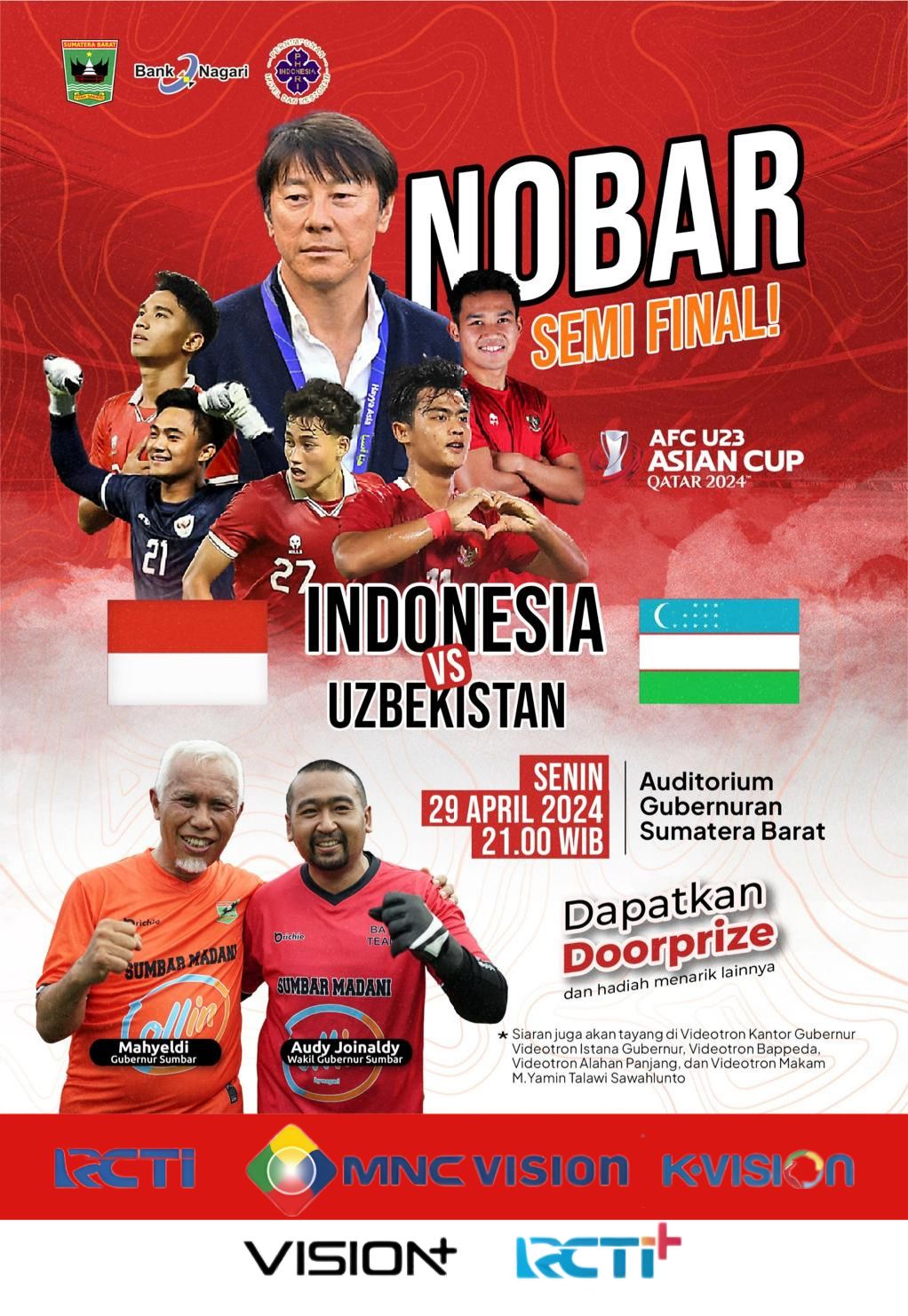 Pemprov Sumbar Gelar Nobar Semifinal Piala Asia U23 di Auditorium Gubernuran dan di Lima Titik Videotron