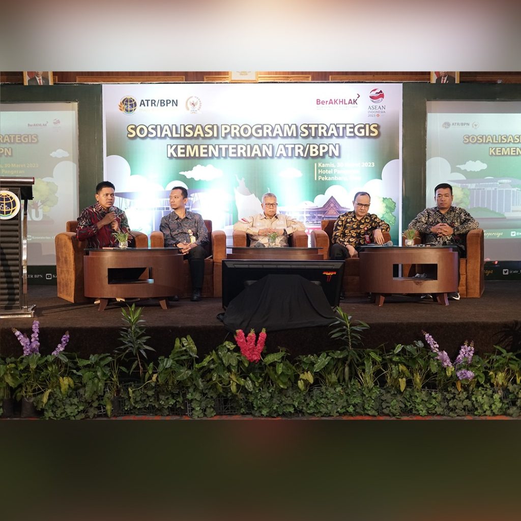 Pekanbaru (Paradiso) – Dalam menyukseskan Indonesia lengkap terpetakan dan terdaftar seluruh bidang tanah di tahun 2025, Kementerian Agraria dan Tata Ruang/Badan Pertanahan Nasional (ATR/BPN) bersama dengan Komisi II Dewan Perwakilan Rakyat Indonesia (DPR RI) gencar menyelenggarakan Sosialisasi Program Strategis Kementerian ATR/BPN. Di mana, kali ini sosialisasi diselenggarakan di Hotel Pangeran Pekanbaru, Riau, pada Kamis (30/03/2023). Tujuan dari sosialisasi ini adalah untuk memberikan informasi kepada masyarakat mengenai program Pendaftaran Tanah Sistematis Lengkap (PTSL) yang menjadi salah satu Program Strategis Nasional (PSN).