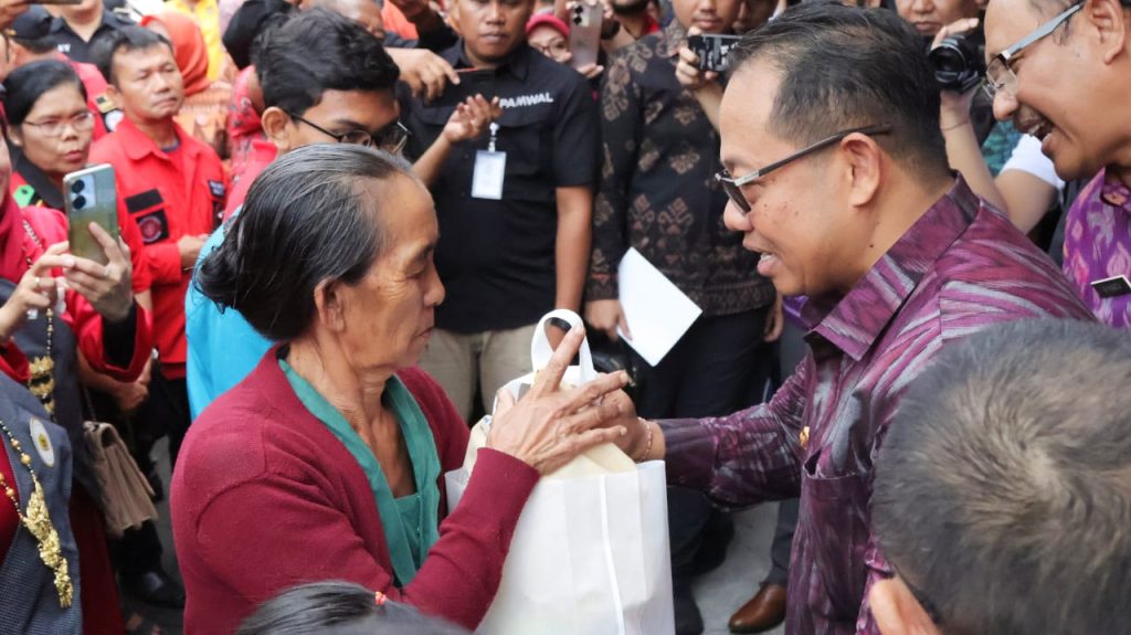 DENPASAR, PARADISO INDONESIA – Pj. Gubernur Bali S.M Mahendra Jaya memberi apresiasi terhadap kegiatan Bakti Sosial Ngrombo yang digagas Badan Kesatuan Bangsa dan Politik Provinsi Bali sebagai salah satu upaya dalam penanganan kemiskinan ekstrim. Kegiatan bakti sosial Ngrombo yang merangkul 601 organisasi masyarakat se-Bali dan sudah dilakukan sebanyak 32 kali selama tahun 2023 menjadi kegiatan yang patut untuk dilanjutkan pada tahun-tahun selanjutnya. Hal ini disampaikannya saat menghadiri Bakti Sosial Ngrombo di Areal Parkir Kantor Badan Kesatuan Bangsa dan Politik Provinsi Bali, Jumat (19/1).